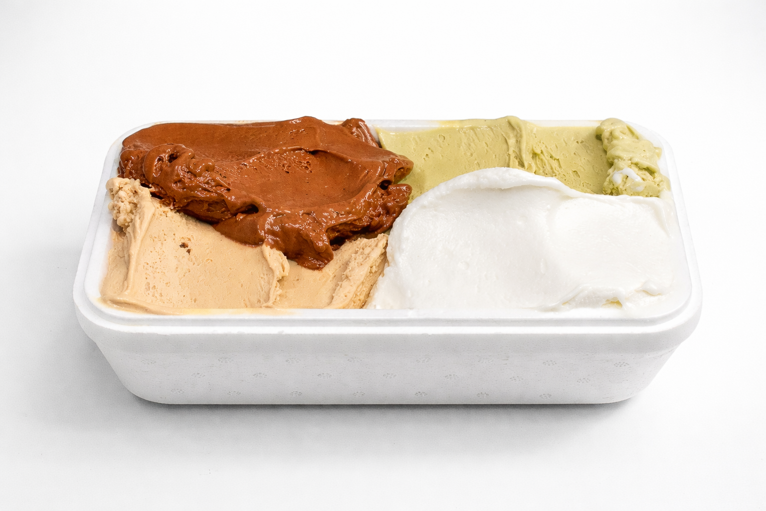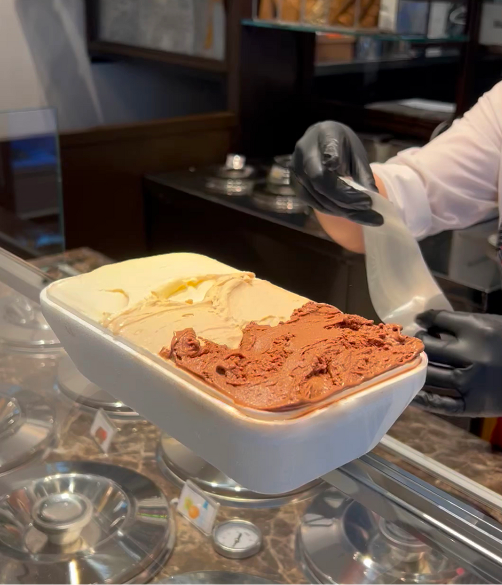 Gusti disponibili tutto l'anno: Fiordilatte, Crema, Pistacchio, Nocciola, Cioccolato Fondente monorigine, Cioccolato Fondente senza lattosio, Stracciatella, Fragola, Limone